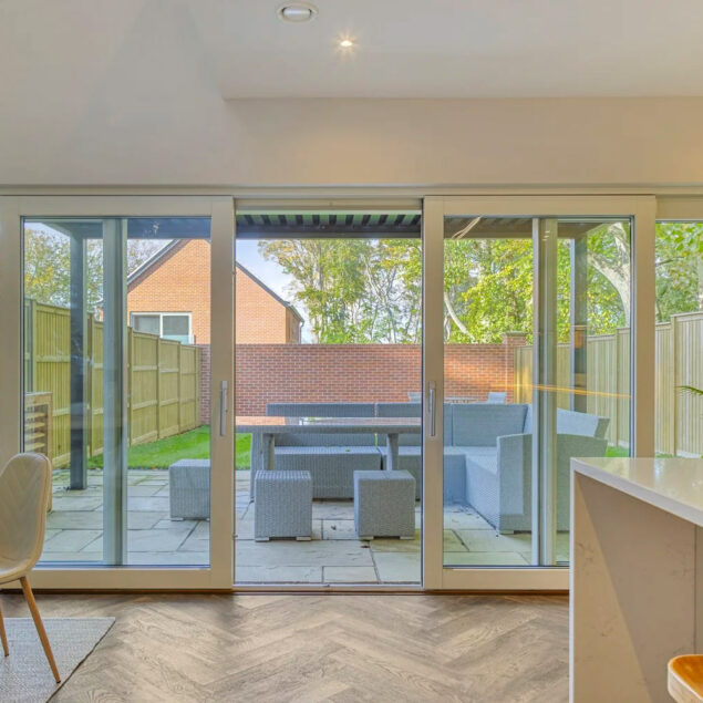 - The lift & slide bi-parting composite sliding door is ideal for residential access purposes at ground floor terrace or upper floor level balcony locations where large openings are required and doors are to be secured principally from within the building.